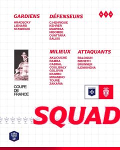 Le staff de l’AS Monaco a dévoilé samedi le groupe retenu pour disputer le 32e de finale de la Coupe de France contre l’AJ Auxerre ce dimanche.