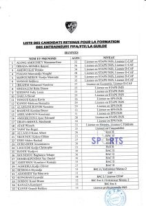 Après étude la liste des candidats retenus a été publiée par la FTF. Elle précise par ailleurs que la date de la formation ainsi que les modalités de participation seront communiquées ultérieurement