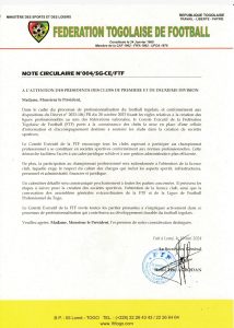 La Fédération Togolaise de Football (FTF) a pris une décision importante ce vendredi 10 mai 2024, dans le processus de professionalisation du football.